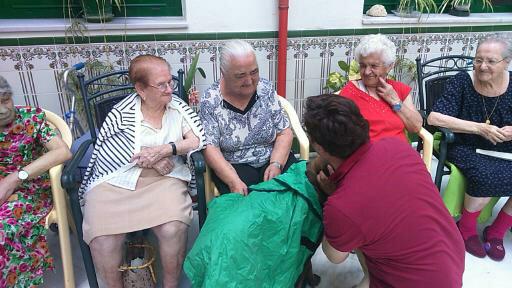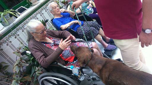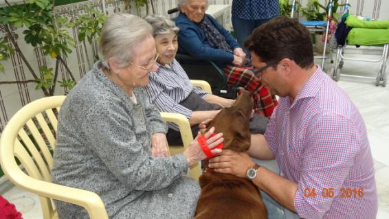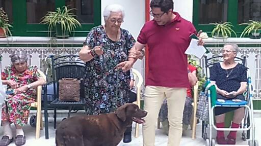 Aquí en nuestra residencia, la Residencia Virgen de las Angustias de Alcalá del Río, se hicieron varias terapias el año pasado, con un adiestrador voluntario que en conjunto con la fisioterapeuta, que tiene un curso hecho sobre esta terapia, elaboraron un plan terapéutico.